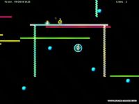 NeonPlat is an arcade platformer where points are scored by using balls to bowl enemies off the screen. Platdude can double or triple jump in the air (with the right power-ups), climb ladders, paint over floors for points and slip below platforms, but he can never carry more than one ball at a time.