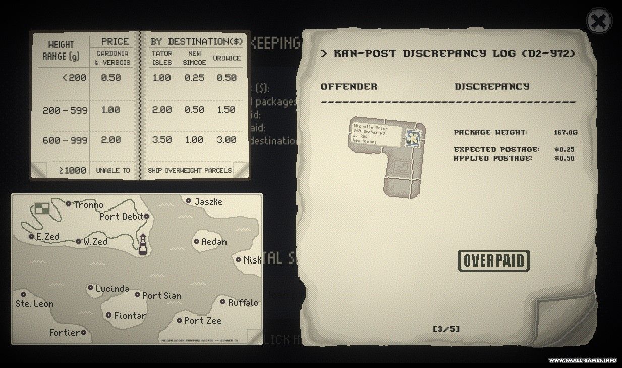 Peggy's Post - симулятор управление почтовым отделением. Как новый владелец почтового отделения, расположенного в маяке, ваша задача состоит в том, чтобы сортировать почту, назначать почтовые сборы и загружать посылки в правильное транспортное средство для доставки. Управляйте своими доходами, чтобы модернизировать инструменты, покупать пакеты марок, арендовать новые корабли и, прежде всего, вовремя погасить кредит - иначе кредитор *обязательно* заберет ваш маяк.